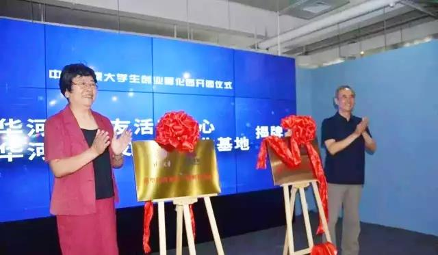 ▲ 河南省人民政府副秘書長王夢飛(右)與清華大學(xué)校務(wù)委員會副主任韓景陽為中國中原大學(xué)生創(chuàng)業(yè)孵化園揭牌