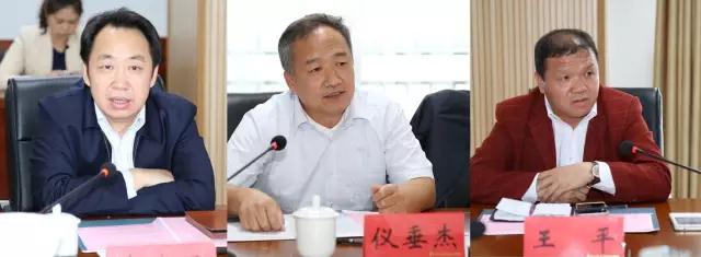 ▲ 左起李奇勇、儀垂杰、王平發(fā)表講話