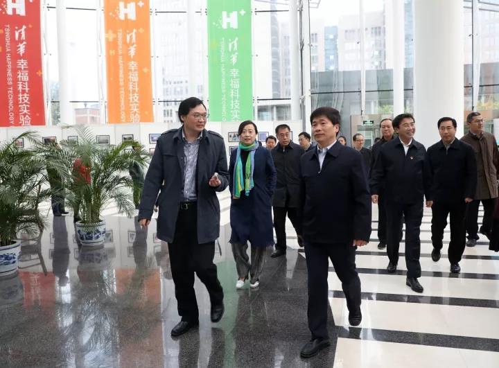 ▲ 杜飛進(jìn)一行參觀清華幸福科技實(shí)驗(yàn)室投資孵化企業(yè)