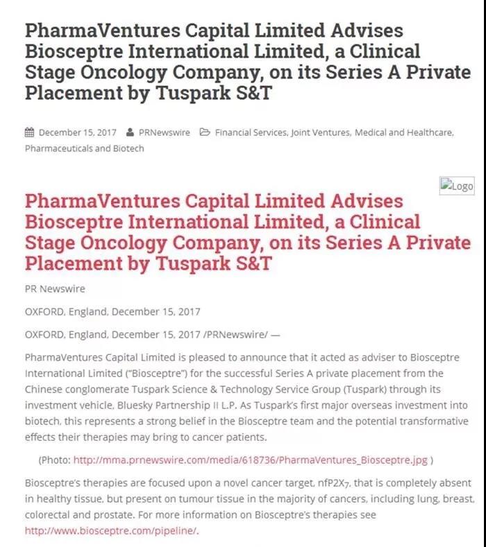 Kltv報道:2017年12月14日,英格蘭Biosceptre已獲得了由中國啟迪科服集團主導的投資,并通過投資工具Bluesky Partnership II LP 完成交易。