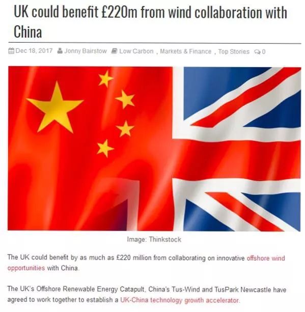 12月18日,Energylivenews在報道中提到,英國可能通過與中國合作創(chuàng)新海上風電項目獲得多達2.2億英鎊的收益。