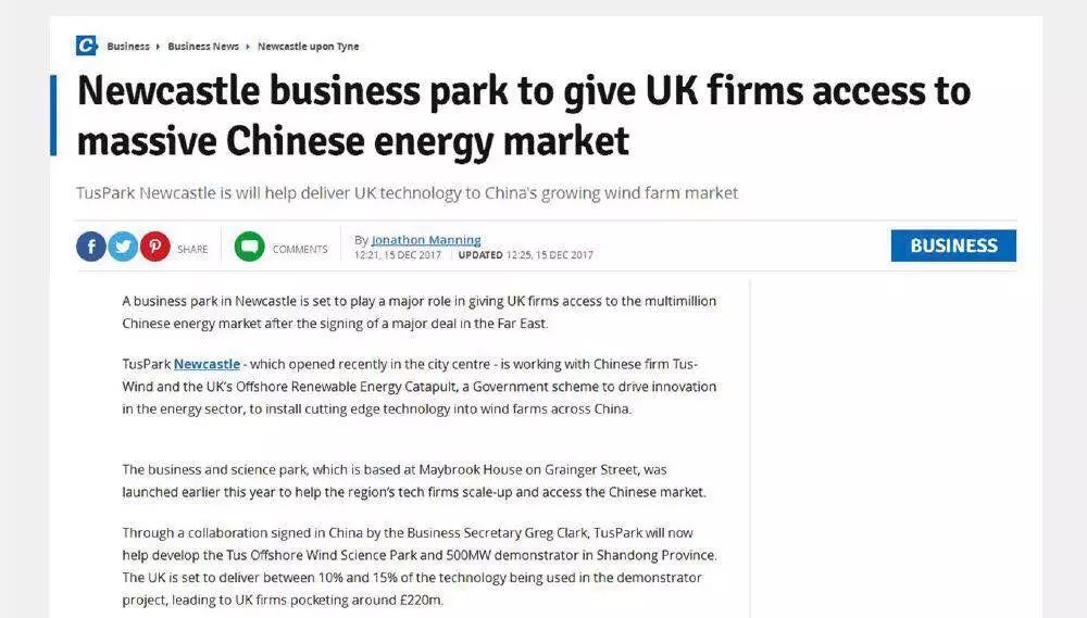 12月15日,英國媒體Chroniclelive報道近期開業(yè)的啟迪紐卡斯爾科技園將幫助英國的先進技術進入中國不斷增長的風力發(fā)電市場。