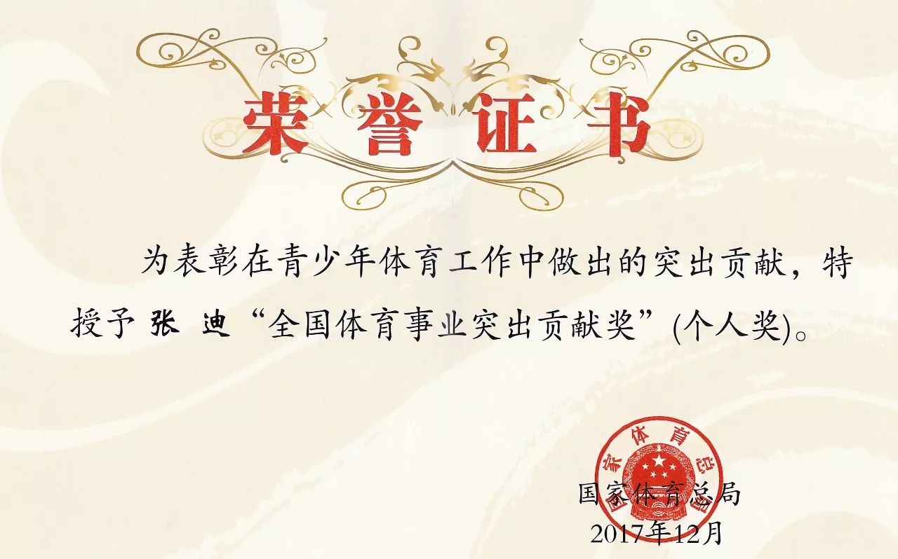 紹興喬波冰雪世界總經(jīng)理張迪榮獲“2017年度全國(guó)體育事業(yè)突出貢獻(xiàn)獎(jiǎng)”