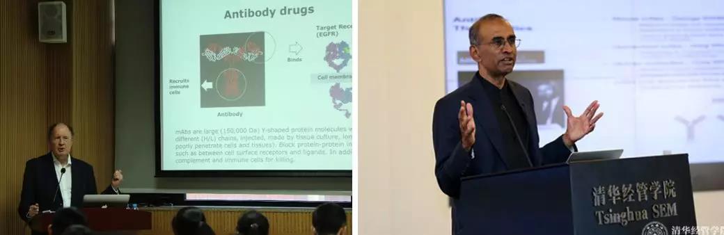▲啟迪控股先后邀請(qǐng)Sir Venkatraman Ramakrishnan院長(zhǎng)與Sir Gregory Winter院長(zhǎng)(左)在清華大學(xué)發(fā)表演講