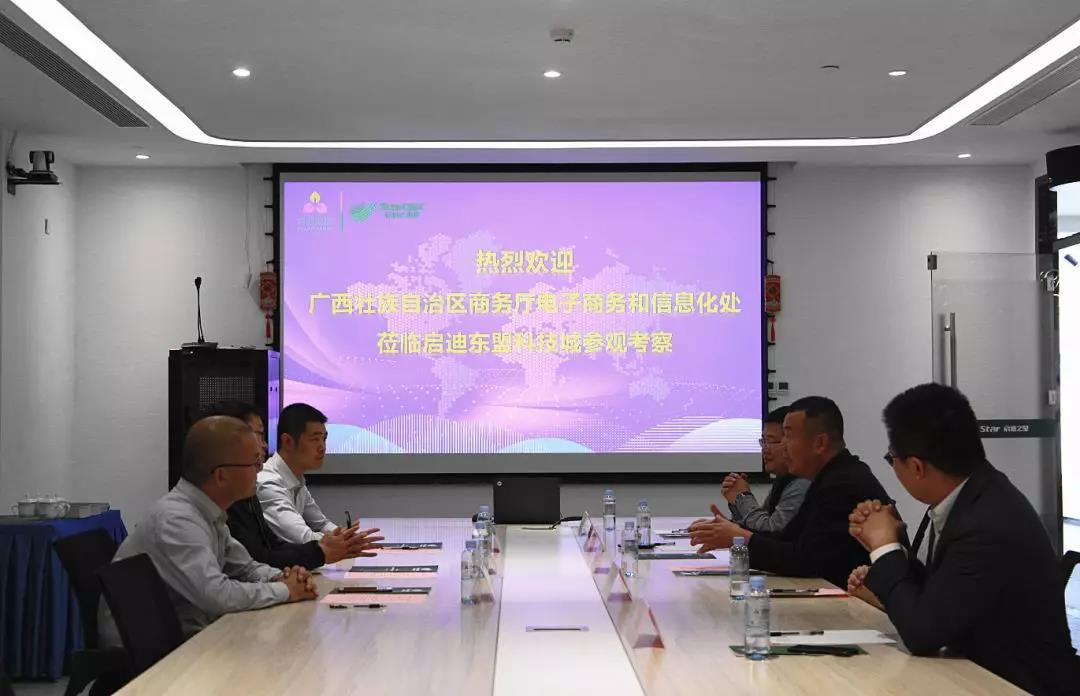 廣西壯族自治區(qū)商務(wù)廳電子商務(wù)和信息化處科長張程、國家商務(wù)部國際商報廣西記者站副站長王冰、廣西啟迪之星科技有限公司副總經(jīng)理方志明、廣西啟迪創(chuàng)新跨境電子商務(wù)有限公司副總經(jīng)理高昌俊等陪同考察座談。
