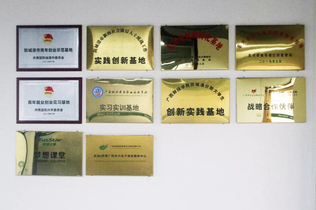 ▲ 啟迪之星(中國(guó)·東興)沿邊跨境孵化基地榮譽(yù)墻