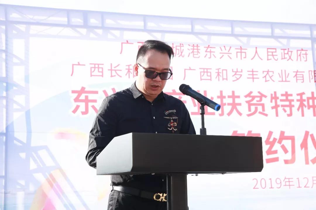 東興市委常委、東興市人民政府常務副市長黃巧玲出席簽約儀式并致辭。她表示,2019年,東興市在專項扶貧、行業(yè)扶貧、社會扶貧“三位一體”的大扶貧格局下著力推進產業(yè)扶貧工程,不斷發(fā)展生產,加強技術、產銷對接,延伸產業(yè)鏈,先后打造出一批農業(yè)成名品牌,貧困群眾發(fā)展生產脫貧內生動力和持續(xù)穩(wěn)定增收能力得到顯著提升。