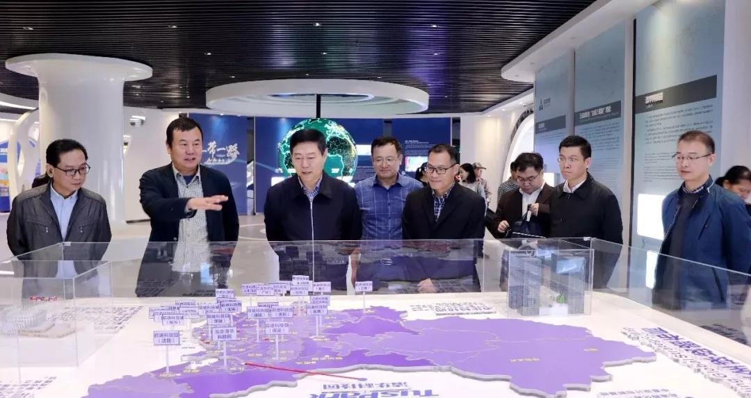 ▲ 錢健副廳長(zhǎng)一行參觀南寧·啟迪東盟創(chuàng)新中心數(shù)字展廳